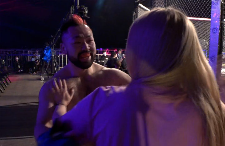 手ごたえありだったのか、試合後ガッツポーズでアピールするのは斎藤、しかしながら判定は、オーディエンスのみドロー、4-0で八須拳太郎に軍配が上がった。 勝利後、八須は、ちゃんよたの元に駆け寄りハイタッチ、その直後なぜかビンタを食らう、完全にふられたのだろうか…