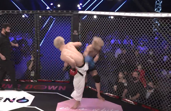 ダンチメン・あつきが蹴り技主体で攻め込む、対するゲンキはパンチで応戦するも、1発2発3発、あつきの左ミドルキックがゲンキの脇腹へ、 ゲンキはダメージのある様子で必死に距離を取りに行く。あつきはこれを追撃、あつきの飛び膝蹴りが顔へヒットしたところでゲンキがダウン。